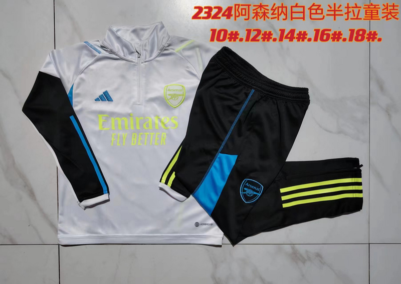 kids kit 23-24 Arsenal white with black half zipper sweater track
