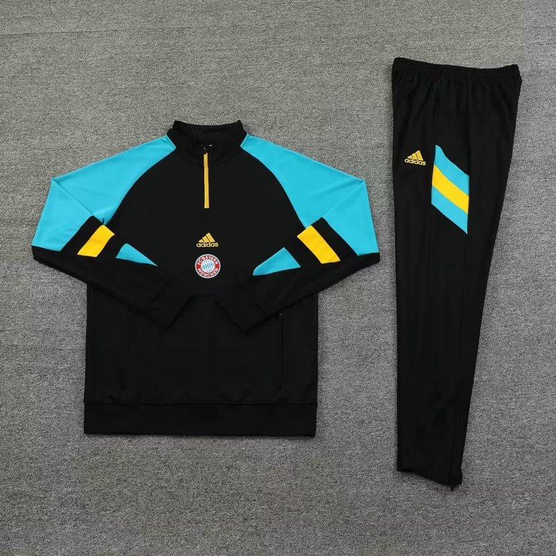 23-24 Bayern black with blue half zipper sweater tracksuit size S-2XL
