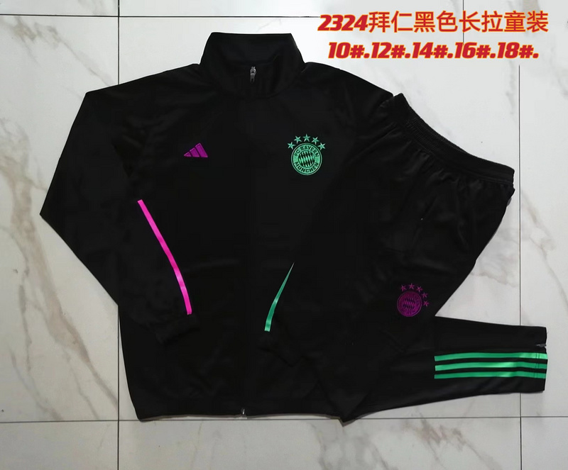 - kids kit 23-24 Bayern black full zipper jacket tracksuit
