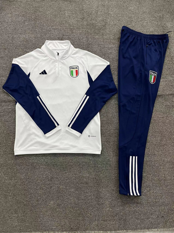 kids kit 23-24 Italy white with blue half zipper sweater tracksuit