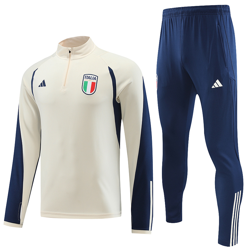 23-24 Italy beige with navy blue half zipper sweater tracksuit size S-2XL