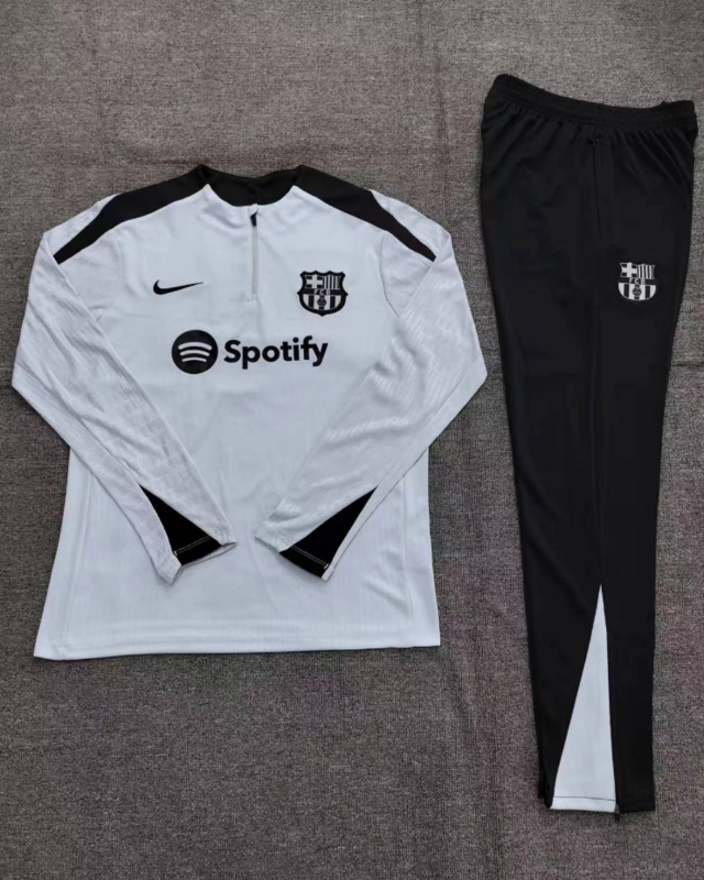kids kit player version 24-25 Barcelona light gray with black half zipper