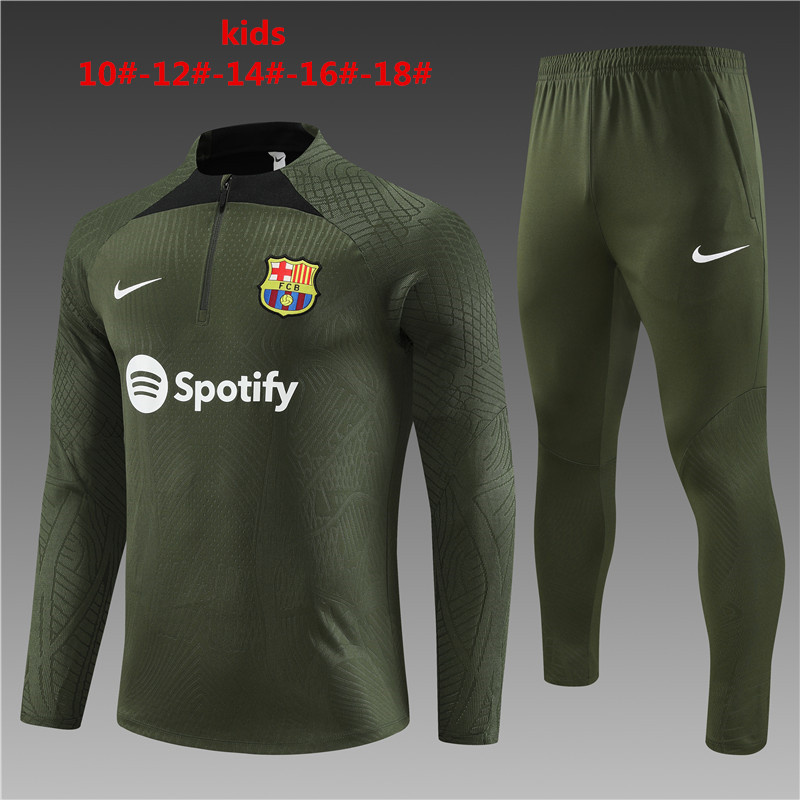 Kids kit fans version 23-24 Barcelona with army green half zipper swea