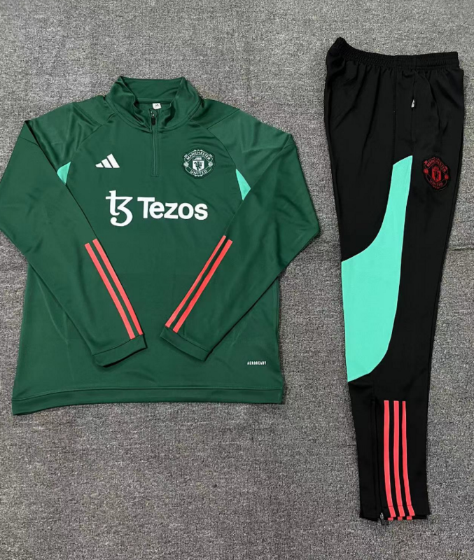 kids kit 23-24 Manud dark green half zipper training tracksuit