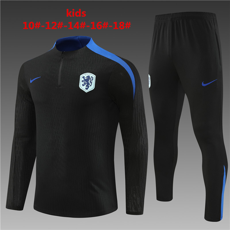 kids kit player version 24-25 Netherlands black with blue half zipper