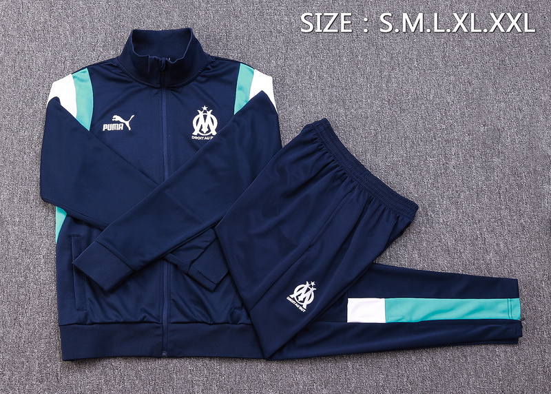 - 23-24 Marseille navy blue with blue and white stripe soccer jacke