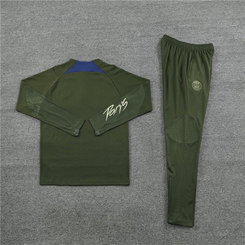 - Fans version 23-24 PSG Jrdan army green half zipper sweater tracksuit