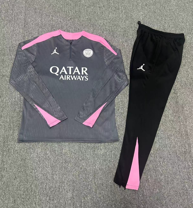 kids kit player version 24-25 PSG dark gray with pink half zipper