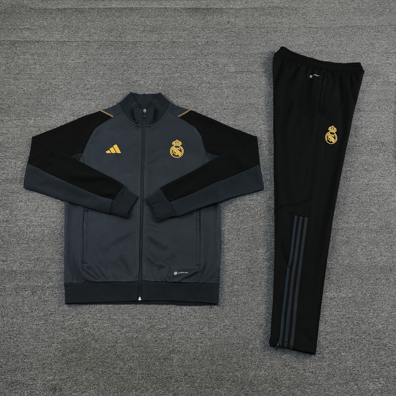 23-24 Real Madrid dark gray with black full zipper jacket tracksuit