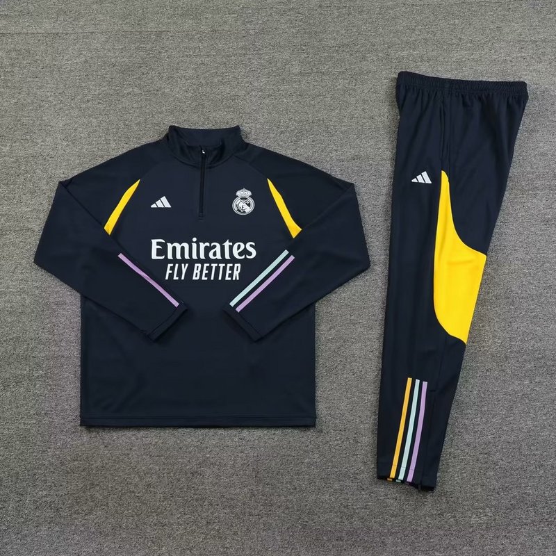 - 23-24 Real Madrid navy blue with yellow half zipper sweater tracksuit