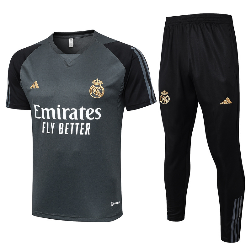 23-24 Real Madrid Grey Tracksuit Short Sleeve Training Suits